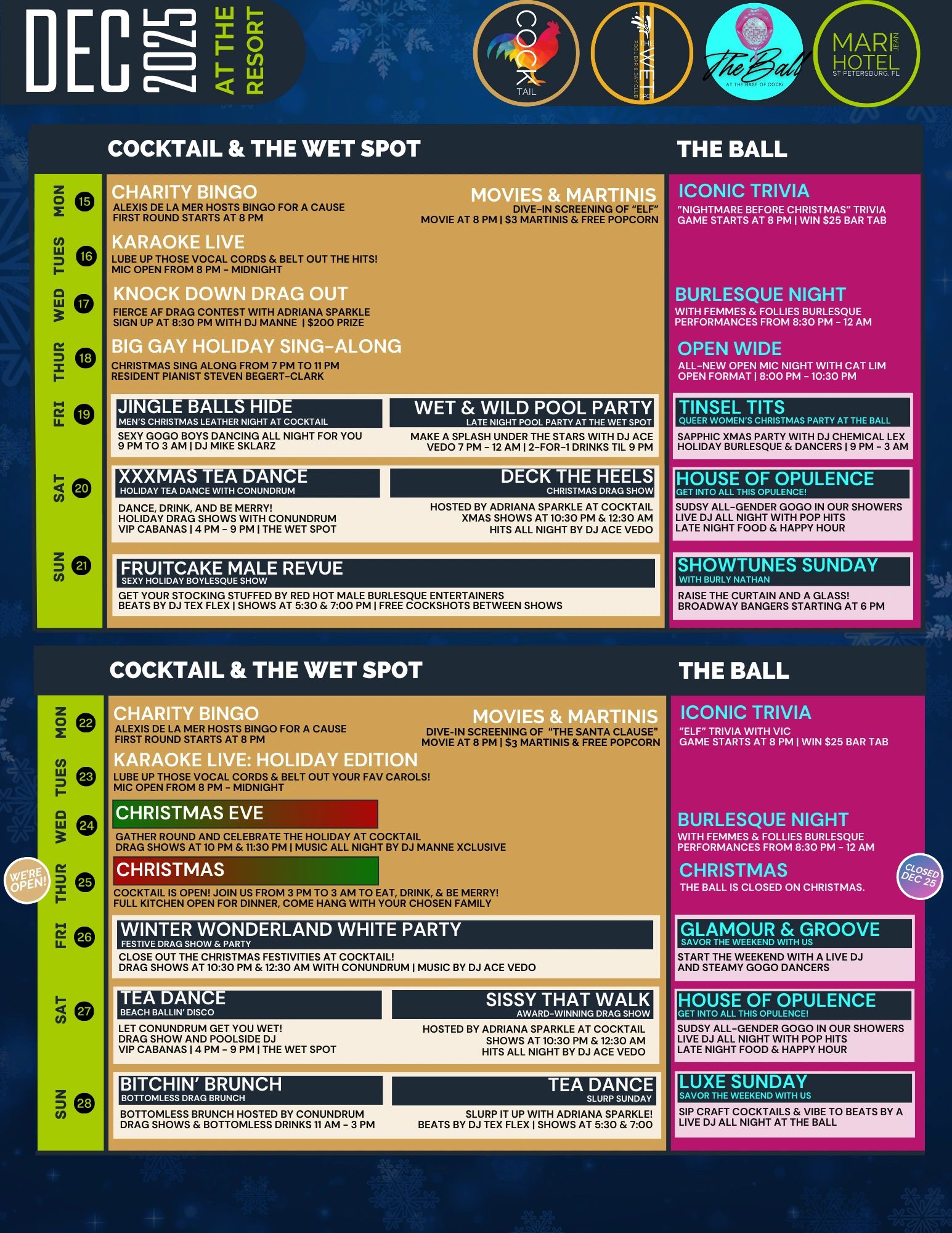 We have some amazing parties planned for to ring in the new year and you are not going to want to miss them! Find out more about our New Year's Eve bash!